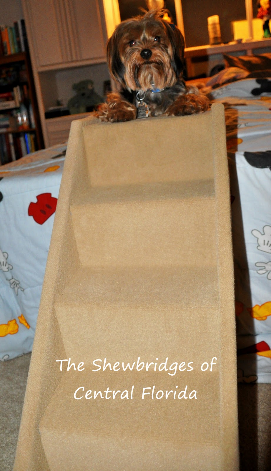 When I sit in my chair in the family room, at least 4 of our doggies sit with me on the chair (right now there are 5 with me because Nano is on the ottoman), either behind me on the back of the chair or on the arms. Here is a picture of me and Mumbo as we are watching TV {of course my ever present laptop is with me, too}, he made sure I knew he was there by putting his paw on my shoulder and giving me a kiss on the ear. :)